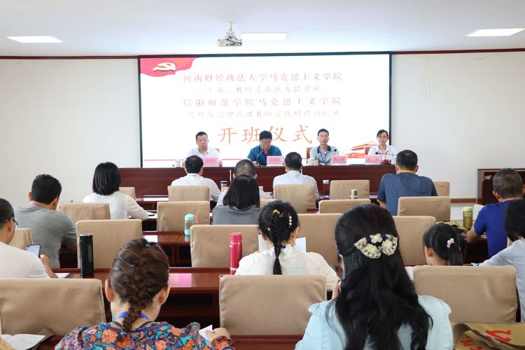 729-84日,河南財經政法大學馬克思主義學院干部、教師素質能力提升班與信陽師范學院馬克思主義學院思想政治理論課教師實踐研修班在我院隆重舉辦。30日上午,舉行了開班儀式。開班儀式由班主任劉進主持,太行山干部學院負責人呂偉軍同志作開班致辭,河南財經政法大學馬克思主義學院院長趙增彥同志作開班動員,信陽師范學院馬克思主義學院院長楊云善同志為培訓班授旗。